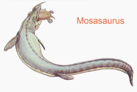 The Mosasaurus was an aquatic lizard, like a flippered crocodile. Its name means "Meuse lizard", because it was found near the Meuse River.Trinacromerum